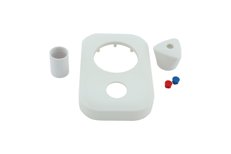 Aufputzset des micro V besteht aus einer verchromten oder weiß Rosette zur Abdeckung des Unterputzstückes micro V. Außerdem mit dabei: